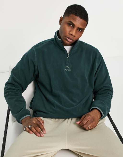 Puma Classics high neck half zip fleece pullover in dark green Very well made.